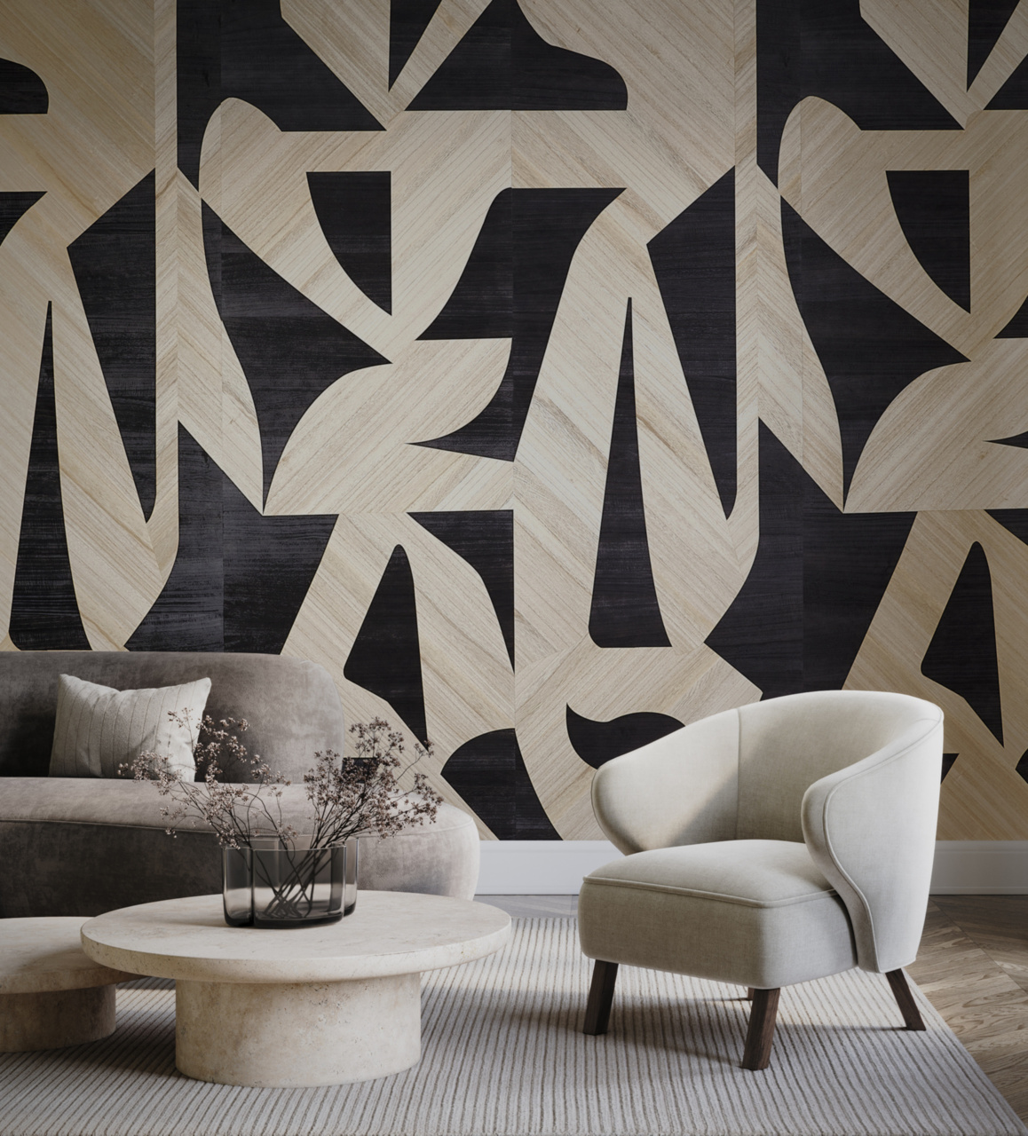 Phillip Jeffries Modern Muse Wallcovering 26601 is a large-scale sculptural wood shapes which create art on the walls. This wood veneer wallcovering is crafted with authentic oak and paulownia wood. The wood is thinly sliced, dyed, and hand laid for a contemporary, abstract motif. Our unique and sophisticated specialty wallcoverings include luxurious artisanal details. As each order is handcrafted there might be a slight variance in texture and colour. This is part of the inherent beauty of handcrafted wallcoverings. Please use our free sample service to see and feel the true beauty of the Phillip Jeffries Modern Muse Wallcoverings.