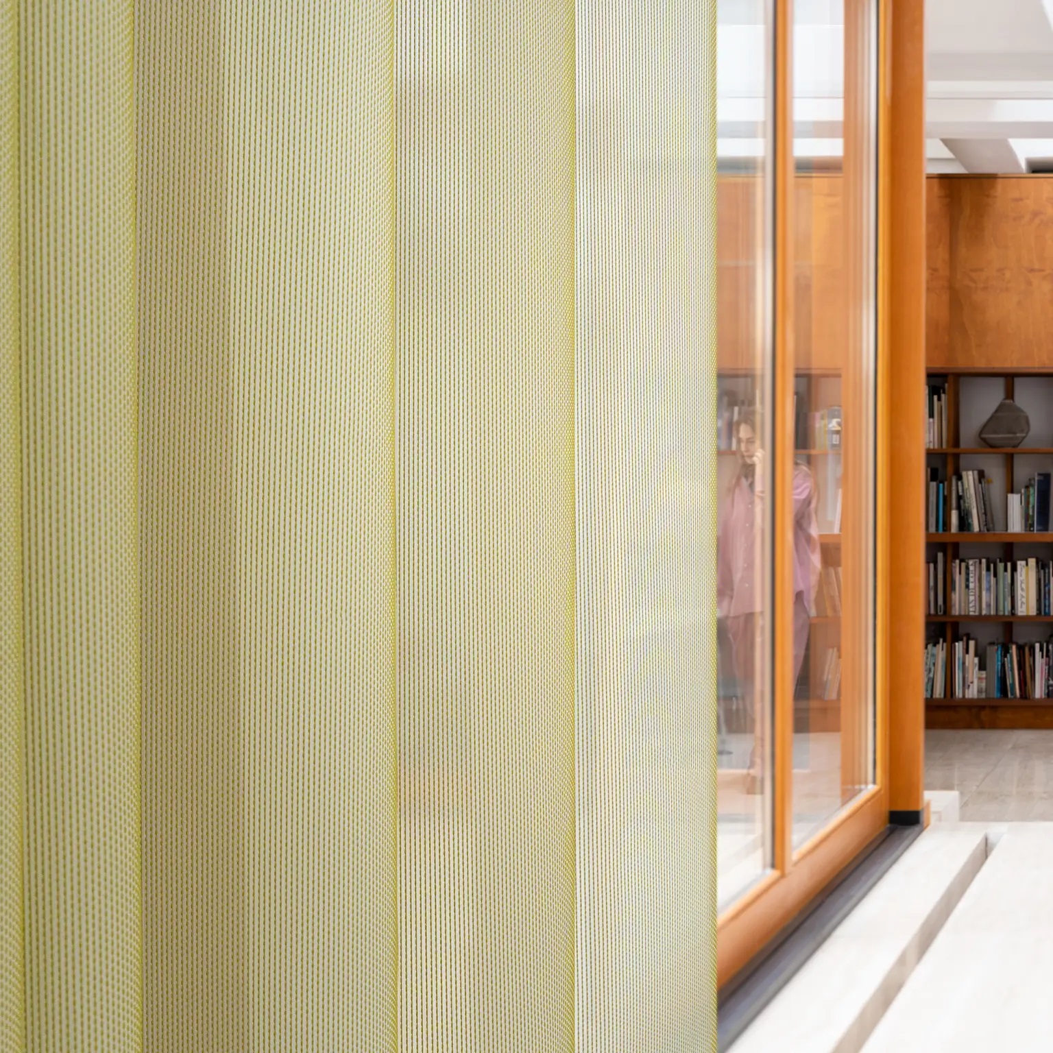 Vescom Formoza Curtain Fabric has been updated with a range of rich, architectural colours – from soft metallics such as copper, bronze and pewter to tinted-glass tones. Inspired by the inherent sheen of the sound-absorbing yarn used to weave the curtain fabrics, the 18-colour palette also includes various shades of white, showcasing the subtle yet atmosphere-altering differences between warm and cool, slick and milky. The refreshed Formoza marks a significant step forward in our commitment to waste reduction and sustainable materials. As part of our Sustainable Materialogy – materials with a common ground for a common good – the curtain fabric now incorporates 42% recycled polyester FR yarn. By gradually transforming our yarns into recycled polyester FR, we’re using our unique position as producers with our 100% owned weaving mill to drive sustainable change.